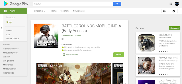 Then You Will Redirect To the Play store and you will see  The Battlegrounds Mobile India (Early access) Tab In Front Of You.