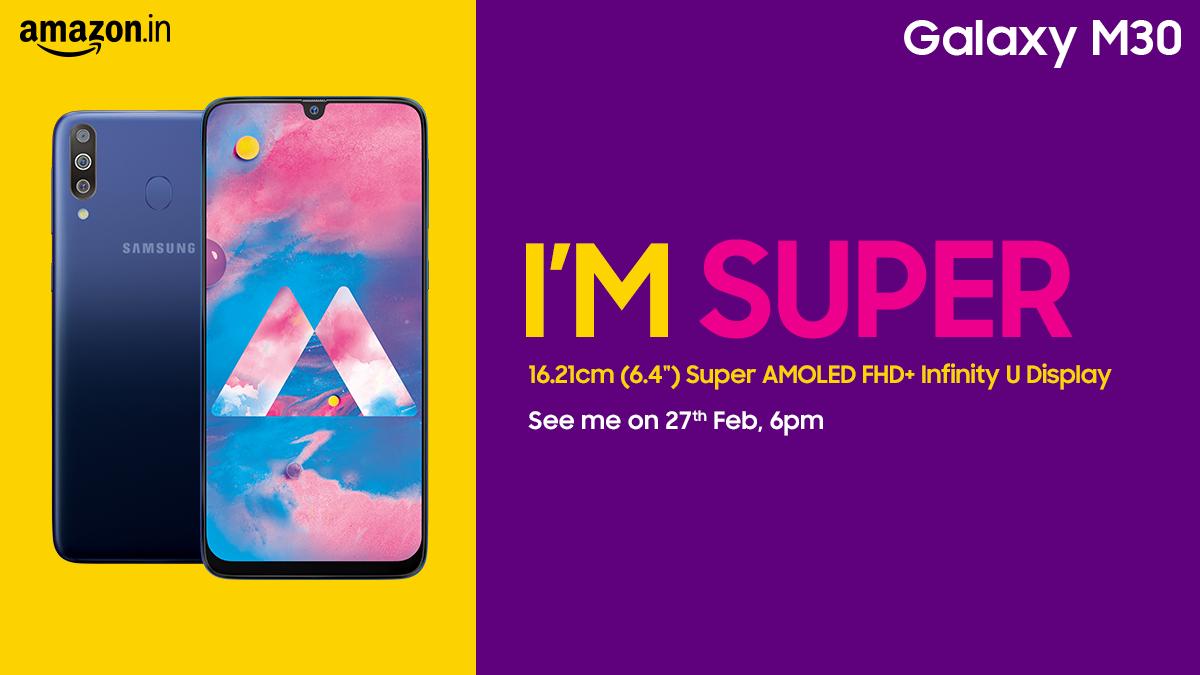 Samsung Galaxy M40Samsung कंपनी उनका  नया स्मार्टफोन Galaxy M30 को भारत मे 27 फरवरी 2019 को लॉन्च करणे वाली है. ये जानकारी samsung ने उनके twitter अकाउंट samsung Mobile India के जरीये बताया है.और उनके twit कि image से पता चलता है कि samsung galaxy M30 मे यू नॉच डिस्प्ले मिलेगा.